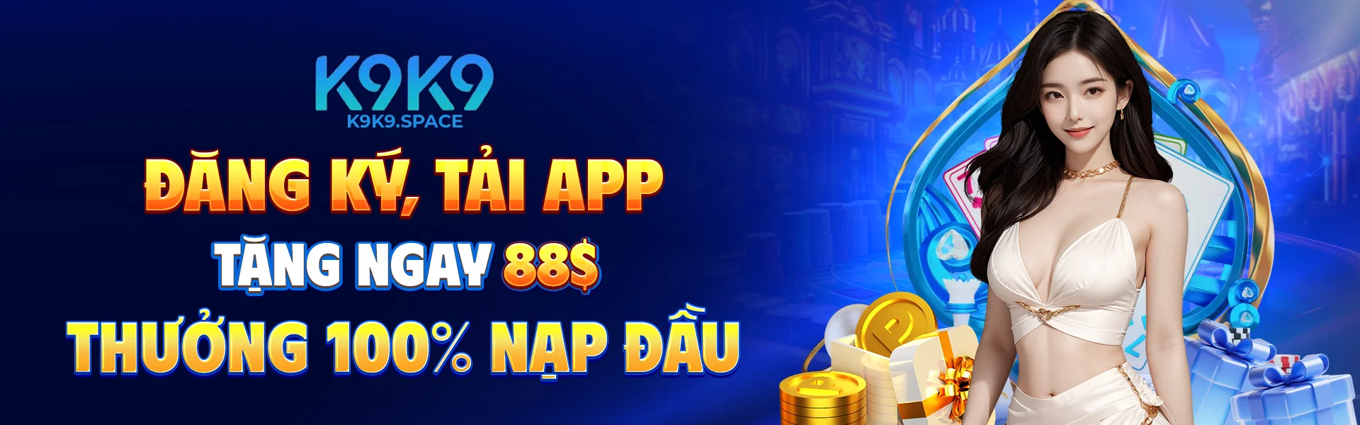 Thành viên mới đăng ký tại K9K9 sẽ nhận ngay 88K tiền thưởng miễn phí không cần nạp, cùng với ưu đãi khủng thưởng 150% giá trị nạp lần đầu lên đến cao nhất 5.888.000 đồng. Số tiền thưởng sẽ được cộng tự động vào tài khoản ngay sau khi hoàn tất quy trình xác thực để bạn có vốn khởi đầu ấn tượng để khám phá đa dạng trò chơi hấp dẫn.
